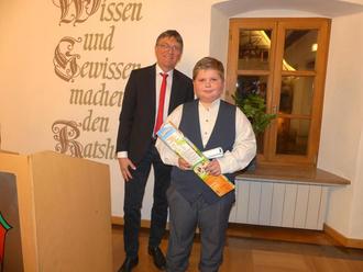 Mit neun Jahren hat Florian Sieler schon Leben gerettet und strukturiert geholfen, Schaden von Leib und Gut abzuhalten. Wie schon berichtet, brachte der Bub seine Familie aus einem brennenden Wohnwagen in Sicherheit, kümmerte sich um seine Mutter, die kaum Luft bekam und führte die Rettungskräfte zum Einsatzort. Für seinen Einsatz erhielt der junge Mann schon Ehrungen vom Bezirk und vom Land Bayern, nun beglückwünschte ihn Ulrich Werner. Dem inzwischen zehnjährigen Jungen schenkte die Gemeinde (unter anderem) leckere Naschereien.