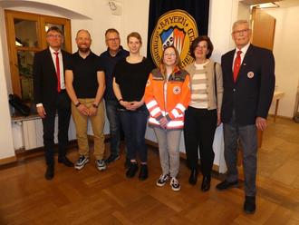Hartmut Bräuer warb für weitere Blutspenden und unterstrich, wie wertvoll die Konserven für die Gesundheit der Menschen sind. Die vom Bayerischen Roten Kreuz geehrten „Wiederholungstäter“ aus der Gemeinde Bergrheinfeld waren besonders fleißig. Sophia Noack, Thorsten Klotz und Manfred Stöcker 50 Blutspenden, Elisabeth Ziegler und Anita Frosch 75 Blutspenden, Christian Koenig 125 Blutspenden und Bernhard Göbel spendete 175 Mal Blut – jeder Einzelne erhielt eine Urkunde, Nadel und Präsente vom Ehrenvorsitzenden des BRK Hartmut Bräuer und Jaqline Hand (BRK Bergrheinfeld); Bürgermeister Ulrich Werner gratulierte.