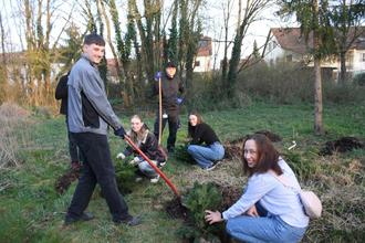 Zwölf Nordmanntannen pflanzten die „Bercher Plüapaare“ in der Erholungsanlage Holderhecke mit Unterstützung des gemeindlichen Bauhofs.