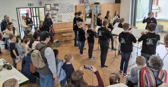 Das Jugendblasochester Berchluft mit einem Ständerle für die Besucher des Schnuppertags