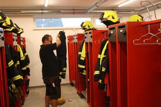 Stefan Pabst verstaut seine persönliche Schutzausrüstung im neuen Spint.