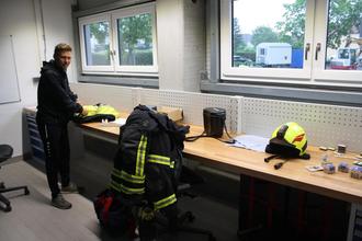 Gerätewart Tobias Wirsching in der neuen Atemschutzwerkstatt.
