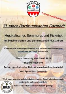 Damit auch unsere musikalischen Fußballfans auf ihre Kosten kommen, würden wir eine Leinwand organisieren und mit Euch das Achtelfinalspiel unserer Nationalmannschaft anschauen.