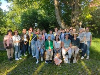 Anlässlich unserer „Dorfwanderung haben wir uns am Donnerstag, 6. Juni 2024 bei Frau Christine Bender in Kolitzheim getroffen, um ihren wunderschönen Rosengarten kennenzulernen. Wir wurden mit einem Herz aus Rosenblüten begrüßt und durften gleich die erste Rosendelikatesse, ein Rosenwasser, kosten. Frau Christine Bender ist Geschäftsführerin der unterfränkischen Obst- und Gartenbauvereine und eine begeisterte Rosengärtnerin und Liebhaberin von historischen und alten Rosen. Viele verschiedene Rosensorten blühen in Ihrem Hofgarten und Frau Bender gab uns einen Überblick über die Geschichte sowie die Botanik der Rose. Sie präsentierte die vielen unterschiedlichen Sorten, gab wertvolle Tipps zur Pflege und zeigte den Sommerschnitt.