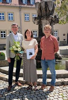 Von links: Bürgermeister Ulrich Werner, Roswitha Sauer, Bibliotheksleiter Christian Schäfer