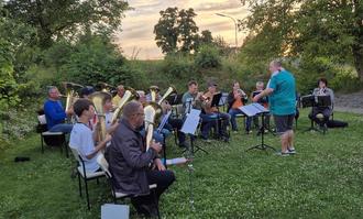 Während Corona waren wir aus der Not heraus gezwungen im Freien zu üben. Wir haben daraus eine Tugend gemacht und "touren" nun mit unserer Musikprobe bis zur Kirchweih jeden Freitag durch die Gärten in Bergrheinfeld und Garstadt.