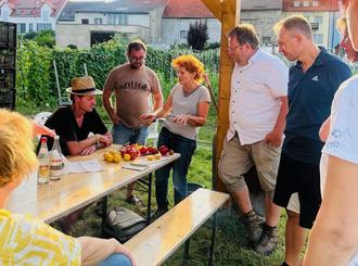 Bei der Verkostung einiger Sorten genossen die Teilnehmenden die sonnengereiften Früchte und feierten den lauen Sommerabend.