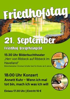 Wir möchten daher 2025 erstmals auch ein Angebot für Kinder im Rahmen des Friedhofstags anbieten. Ab 15:30 Uhr wird Bibliotheksleiter Christian Schäfer die Geschichte von „Herr von Ribbeck auf Ribbeck im Havelland“ als Bilderbuchtheater (Kamishibai) erzählen. Christian Schäfer ist selbst unweit vom Havelland groß geworden und hatte seine Schule auf einer Halbinsel in der Havel, daher wird er die Erzählung auch mit ein paar persönlichen Anekdoten verbinden.