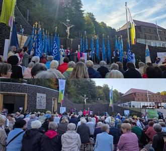 Rund 500 Frauen aus 40 Zweigvereinen machten sich am 20.09.2025 auf den Weg zum Kreuzberg. Gemeinsam feierten wir bei sonnigem Wetter im Freien vor der Wallfahrtskirche die Frauenliturgie. Diese stand unter dem Motto des Heiligen Jahres „Pilger der Hoffnung“.
