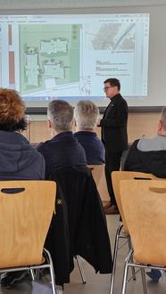 Bei der anschließenden konkreteren Projektvorstellung im Haus der Begegnung (HdB) wurden Fragen an Referent Thomas Dettweiler gestellt, zum Beispiel: Thema Anzahl notwendiger Stellplätze, Kriterien zur Tagespflege, ambulant betreute Wohngemeinschaft und hohe Baukosten. Dieter Wagner bedankte sich bei Herrn Thomas Dettweiler und allen Teilnehmer/innen für das gezeigte Interesse.