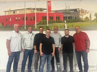 Das Bild zeigt die Vorstandschaft sowie Vereinswirt Juli und dessen Mitarbeiter Sergio.