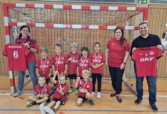 Die Minis freuen sich ebenfalls über zwei neue Trikotsätze und bedanken sich bei ihren Sponsoren „Charlys Sinnesstudio“ und „Hartmann Abbruch“.