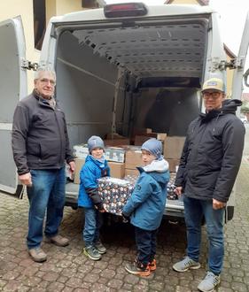 Am 7. Dezember konnte Fam. Liebenstein 73 Lebensmittelpakete (davon 36 von der Mittelschule Bergrheinfeld) und Geldspenden in Höhe von 1220,-- € bei der Sammelstelle in Löffelsterz abgeben. Danke auch an Steffen Klotz für den Transport und der Fa. Amrhein für die Bereitstellung des Fahrzeuges.