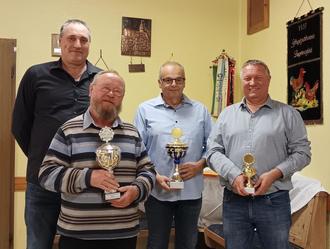 Die beiden Vorsitzenden Harald Kraus und Paul Lutz des 1953 gegründeten Rassegeflügelzuchtverein Bergrheinfeld zeichneten im Rahmen ihres Ehrenabends erfolgreiche Züchter aus und kürten die Vereinsmeister.