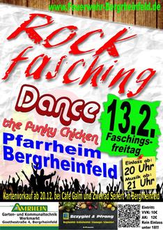 Am Faschingsfreitag, den 13.02. findet wieder der Rockfasching im Pfarrheim statt. Wie schon letztes Jahr werden die legendären „Dance the funky Chicken“ das Pfarrheim wieder zum Beben bringen.