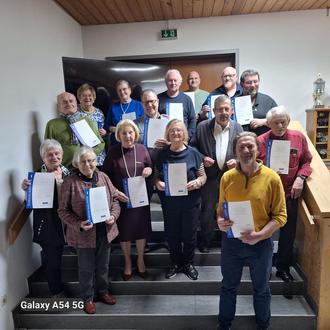 Die geehrten Mitglieder: Für 10 Jahre Margot Amrhein, Edeltraud Eusemann, Paul Göb, Rosemarie Handschuh, Nicole Müller, Friedrich Panzer, Rainer Spath, Brigitte Stretz, Frank Treutlein, Hannelore Wehner, für 20 Jahre: Werner Füsser, Thomas Posselt, 25 Jahre: Karin Düchs und für 30 Jahre Wolfgang Dumrauf, Friedrich Wiebusch.