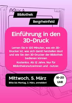 Die Teilnahme ist kostenlos. Bitte melden Sie sich möglichst bis zum 3. März oder zumindest kurzfristig am 5. März in der Bibliothek an (bibliothek@bergrheinfeld.de / 09721 90038). So können wir besser planen und vorbereiten. Vielen Dank.