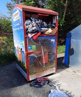 übervoller Altkleidercontainer am Rutzendorfer Weg (Nähe FFW)