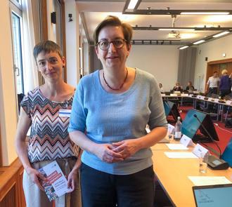 Regionalmanagerin Andrea Denzinger (links) traf beim Workshop in Berlin unter anderem Bundesbauministerin Klara Geywitz. Sie stellte dort die „Aktionstage Innenorte“ als regionale Erfolgsgeschichte vor.