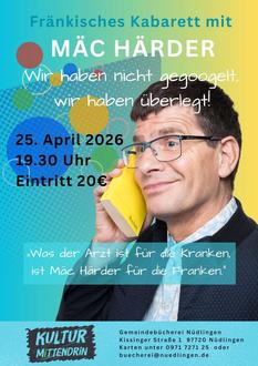 Verbringen Sie einen witzigen, entspannten Abend mit Mäc Härder, der fränkischen Frohnatur und dem Wohltäter des treffenden Wortspiels.