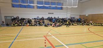 Halle voll zur Weihnachtsfeier der Kinder- und Jugendfußballer des SV Allstedt. So viele Mädchen mischen mit -prima.