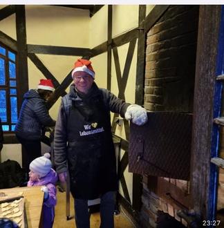 Kinderspaß mit dem Bürgermeister - das Plätzchenbacken am historischen Ofen nicht verlernt. Ausstechen und Belegen durften die Kinder!