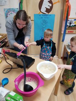 In der Kita Emseloh begrüßte der Weihnachtsmann kurz vor dem Fest die Kinder. Mit strahlenden Augen überreichte er die Geschenke an die Kinder und auch Erzieher. Eine Mama spendierte ein Waffeleisen und backte mit den kleinen Wichteln leckere Bananenwaffeln.