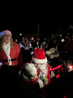 Um 17:30 Uhr folgte der Höhepunkt für viele kleine Besucher: Der Weihnachtsmann, dargestellt von Herrn Fulczyk, fuhr auf seinem „heißen Schlitten“ – einem festlich geschmückten Motorrad – auf den Schulhof. Mit einem Sack voller Geschenke zauberte er den Kindern ein Lächeln ins Gesicht und brachte die Magie von Weihnachten hautnah in die Herzen aller Anwesenden.