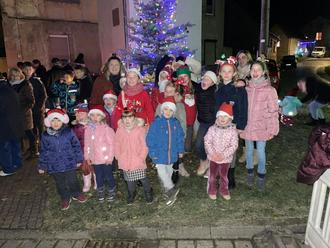 Nach langem Üben war es endlich soweit, unser erster Auftritt stand bevor. Jedes große Kind schnappte sich ein kleineres und auf ging es in Richtung Seigerturm zum Ansingen des Weihnachtsbaumes. Alle waren total nervös und wurden schon freudig von den Eltern und Großeltern erwartet. Dann war es soweit, der erste Auftritt. Eltern, Großeltern, Onkel und Tanten waren so begeistert, dass die Mädels und Jungs den Tanz zweimal aufführen mussten. Stolz und erleichtert fielen die Kinder ihren Eltern in die Arme. Das war ein super erster Auftritt.