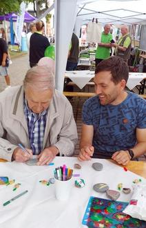 Der Kreiskirchentag fand am 30.08.2025 um das Geländer der Kirche zu St. Johannis statt. In der Kirche gab es zudem diverse Veranstaltungen, die regen Andrang erreichten. Der Heimatverein hat sich gleich mit zwei Ständen präsentiert. Zum einen war der Literaturstand vertreten und gut angenommen worden, zum anderen boten wir Kindern die Möglichkeit Steine zu bemalen. Dazu konnten sie eigene Kreationen auftragen oder sie nutzten Schablonen, die zur Verfügung standen. Wer aber glaubt, dass nur Kinder daran Freude hatten, der irrt. Bei diesem Angebot nahmen auch Erwachsene gern die Stifte in die Hand und probierten sich künstlerisch aus.