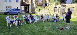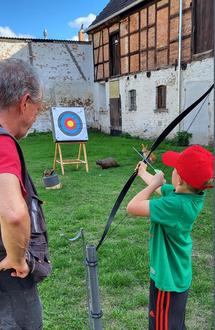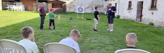 Rund zwei Stunden lang durften die Kinder unter fachkundiger Anleitung von Dirk Albrecht, Patrick Mitschka und Mathias Hesse Pfeil und Bogen selbst in die Hand nehmen und erste Erfahrungen mit dem traditionellen Sport sammeln. Die drei Mitglieder des Heimatvereins vermittelten mit viel Geduld und Begeisterung die Grundlagen des Bogenschießens – von der richtigen Haltung bis zum gezielten Schuss ins Schwarze.