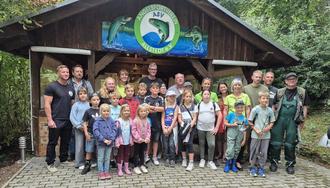 Der 01.09.2025 stand für uns im Zeichen des guten Zusammenwirkens mit dem Angelverein Allstedt. Unser Kidstreffen fand hier bei bestem Wetter statt. Dabei interessierten sich 18 Kinder für unser Thema „Petri Heil“. Die Einführung übernahm Chr. Eckert, der Unterstützung von fünf weiteren Angelfreunden erhielt. Nach einer theoretischen Einführung in die Fischkunde unserer Gewässer, und einem Schlüsselband des Vereins als Geschenk, wurden Gruppen gebildet, die Angeln verteilt und rund um den Teich ein schönes Plätzchen gesucht. Als Köder dienten dabei Maiskörner und Rotwürmer. Einige Kinder kannten sich bereits gut aus und wussten schon, worauf es ankommt, die Jüngsten allerdings mussten sich erst in Geduld üben. Herr Eckert erklärte den Zulauf des Wassers über die Rohne und dem Ablauf unter der Teichbrücke, Richtung Eberhard-Kanngießer-Stadion. Anfangs waren die Fische offenbar desinteressiert, weshalb zum Anlocken eine handvoll Mais ins Wasser geworfen wurde. Dann ging es Schlag auf Schlag. Immer wieder bissen kleinere und etwas größere Fische an. Darunter zählten vornehmlich der Kaulbarsch, die Rotfeder und der Giebel. Über deren Besonderheiten wurden die Kids fachkundig aufgeklärt, wenngleich sie sehr wohl imstande waren die Unterschiede auf Anhieb festzustellen. Die Rotfeder erkannten sie prompt an den orange bis blutrot gefärbten Flossen, während der Kaulbarsch mit seinen langen Stacheln am Kiemendeckel für Aufsehen sorgte. Der Giebel dagegen wirkt mit seinen silbrigen bis olivgrünen Schuppen eher unspektakulär und so wie man Fische wohl kennt. Kann man denn Fische streicheln? Das wollten die Kinder wissen und sie taten es und dann ging es mit angefeuchteten Händen behutsam zurück ins Wasser. Ein Spaß für die Kinder, ein Spaß auf für alle Anwesenden. Selbst die Stadtschreiberin Arianne Emmingshausen wollte sich dies nicht entgehen lassen und verweilte gern bei uns. Zwei Stunden vergingen wie im Flug und so sammelten sich alle auf dem Gelände des Anglervereins, wo sich das siebte Mitglied O. Gebhardt an das Grillgut gemacht hatte. Hungrig und durstig nahmen die Kinder Platz und unterhielten sich aufgeregt über ihre Erlebnisse. Ein spezielles Anglerzelt mit einer Liege darin wurde durch G. Stark aufgebaut, der gleich die besonderen Raffinessen schilderte. Zum Abschluss wurde das Boot für eine Runde auf dem Teich fertiggemacht, welches E. Aderhold ruderte. Ein großes Dankeschön gilt den Männern des Anglerverein Allstedt e.V. für die schönen und sehr interessanten Stunden. Es munkelt bereits, dass sich sogar ein paar Eltern über eine Mitgliedschaft erkundigen. Na dann weiterhin Petri Heil.