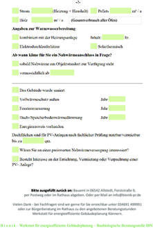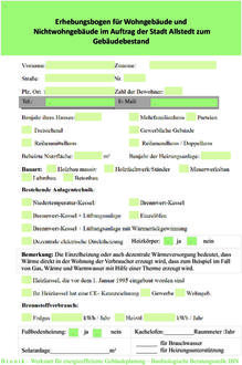 - Untersuchung private Haushalte, Unternehmen und Wohnungsgesellschaft: hier erfolgt eine freiwillige schriftliche Befragung mittels Datenerhebungsbögen, um den Bedarf zur Wärmeversorgung zu ermitteln