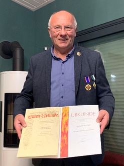 Das war ja eine Fülle an Erledigungen im Oktober. Dabei stand ich Dank Ihnen nach 20 Jahren Bürgermeisteramt so was im Focus, dass ich keinen Ermessensspielraum mehr hatte. Nun ist es jedoch mir wichtig all denen Danke zu sagen, die mich auf dem langen Weg nicht vergessen haben. Und die Auszeichnungen sind mir nicht unwichtig. Zeugen sie doch von Dankbarkeit und Anerkennung. Habt vielen Dank für die tolle Geste. Goldenes Ehrenabzeichen vom SGSA.
