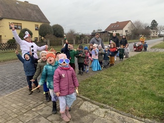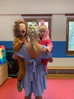 Unsre Faschingsfeier begann mit einem gemeinsamen Frühstück aller Kinder und Erzieherinnen an einer langen Tafel in der Disneywelt. Im Hintergrund spielten die bekannten Disneylieder, bei denen die Kinderfast textsicher in den Tag starteten. Danach wollten die Kinder natürlich auch ihre schicken und kreativen Kostüme vorführen. Deshalb fassten wir uns an die Hände, nahmen eine Musikbox und viele Instrumente mit und veranstalteten unseren eigenen kleinen Faschingsumzug durch Mittelhausen.