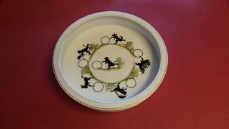 Die anschließende Museumsführung war besonders für die junge Kollegin interessant, es gefielen besonders der antike Schreibtischstuhl und der originale Instrumentenschrank in der Praxis. Herr Hoffmann bewunderte unsere Beyernaumburger Erntekrone. Interesse fanden auch die blauweissen DDR-Tierkeramiken einer Weimarer Künstlerin und die originalen Tapeten von 1979 in der Bibliothek. Zuletzt fiel noch das Familienerbstück, ein handgemalter Kätzchen-Futternapf von Royal Rudolstadt (mit U.S. Patent von Flossie Fishers Funnies 1915) ins Auge.