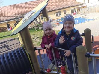 Lange haben wir auf die neuen Spielgeräte gewartet, aber es hat sich gelohnt. Der neue Balancierbalken für die größeren Kinder, das Kletterelement für die Jüngsten und die Geräte für den Sportraum wurden sofort von den Kids erobert.