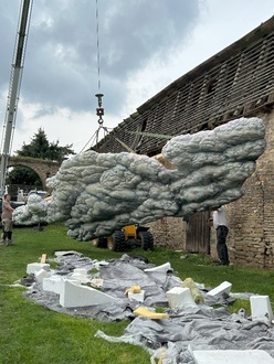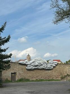 Die Wolke von Julia Schleicher „schwebt“ über die Mauer am Vorwerk.