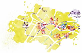 Der Kunstparcours zieht sich auf einer Länge von rund einem Kilometer durch das Allstedter Zentrum. Der folgende Lageplan gibt Ihnen einen Überblick über die Standorte der einzelnen Kunstwerke und Angebote.