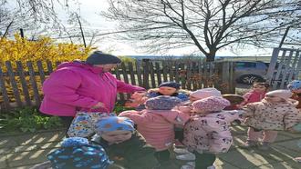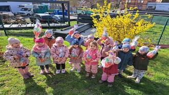 Am Dienstag, den 26.03.2024 feierten wir Ostern in der Kita vor. Der Tag startete mit einem sehenswerten Frühstück. Die Kinder waren schon sehr aufgeregt, ob der Osterhase denn wirklich gekommen sei. So machten wir uns in den einzelnen Jahrgängen etappenweise auf dem Weg zum Kaninchenverein. Dort begrüßten uns Frau Fischer, Herr Fischer und Frau Werner. Wir überreichten ihnen ein wenig Hasenfutter und machten uns dann auf die Suche nach den bunten Eiern. Jeder war bei der Eiersuche beim Kaninchenverein erfolgreich, aber da dies noch nicht reichte, hatte der Osterhase auch auf unserem Kitagelände Osterpräsente für die Kinder versteckt. Somit ging die Schatzsuche bei uns weiter und die Kinder entdeckten voller Neugier ihre Ostergeschenke.