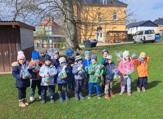 Bei einem Spaziergang durchs Hornfeld überraschte Thomas Schmidt die Bienen und Eichhörnchen Gruppen. Er hilft jedes Jahr dem Weihnachtsmann die Geschenke zu verteilen und hatte noch welche vom letzten Weihnachtsfest übrig. Diese verteilte er an jedes Kind. Wir konnten es kaum glauben, so kurz vor Ostern noch Weihnachtsgeschenke zu bekommen. Wir packten alles in den Sack zurück und liefen mit diesem 1 Woche vor dem Osterfest durch Allstedt zurück in die Kita. Vielen Dank lieber Weihnachtsmann!