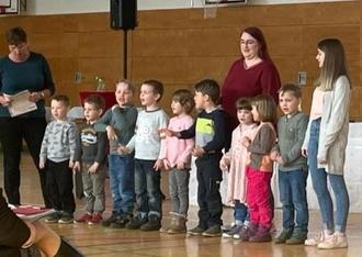 In der Osterwoche gab es für die mittleren und großen Gruppen noch einen wichtigen Termin. Wir waren zur Verabschiedung unseres Bürgermeisters in die große Turnhalle eingeladen. Mit einem kleinen Programm verabschiedeten die Kreuzbergkinder Herrn Richter in den Ruhestand. Wir danken auch auf diesem Wege Herrn Richter für sein Engagement und wünschen viel Gesundheit, Glück und Zufriedenheit als Pensionär.