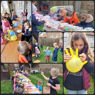 Dem Osterhasen zu helfen, war den Kindern eine wahre Freude. Die Farben knallig, die Kreativität groß, sodass am Ende mit nur zwei geplatzten Eiern immerhin 198 Eier für die Ostereiersuche am 30.03.2024 fertig geworden sind.