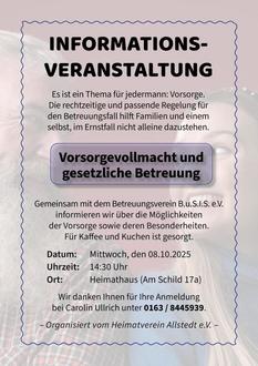 Wir gestalten nun seit ein paar Jahren spannende Kidstreffen, die sehr gern angenommen werden. Es liegt uns jedoch auch viel an anderen Themen, die für eine Bevölkerungsgruppe verschiedenen Alters gedacht sein soll. Die ersten beiden Informationsveranstaltungen sind daher schon geplant und wir freuen uns auf eine rege Teilnahme.