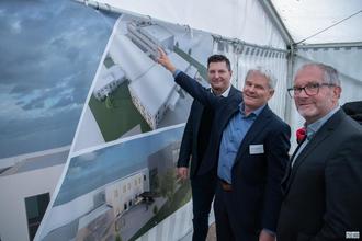 Gemeinsam mit dem Bauunternehmen Goldbeck fiel der Startschuss für einen dreigeschossigen Neubau, der künftig moderne Logistik-, Produktions-, Kantinen- und Sozialbereiche vereint.
