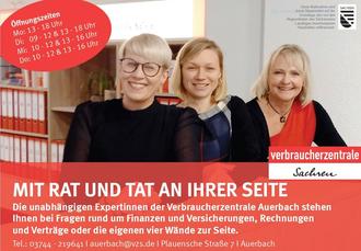 Ein ereignisreiches Jahr neigt sich dem Ende zu. Mit zahlreichen Beratungen zum Energieanbieterwechsel, Geldanlagen, Versicherungsfragen oder dem Erstellen von Patientenverfügungen standen wir vielen Verbrauchern in Auerbach und Umgebung gerne zur Verfügung.