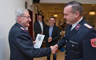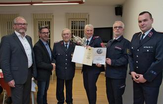 Zwei ganz besondere Ehrungen waren die von Kamerad Rudi Schädlich für 60 Jahre und Kamerad Klaus Temper für 65 Jahre Mitgliedschaft bei der Feuerwehr.