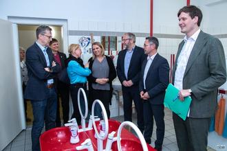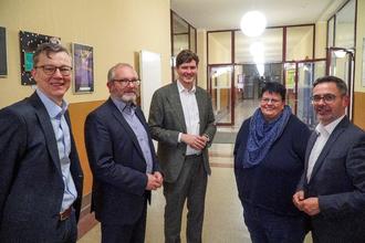 Begleitet wurden die beiden Politiker dabei von Auerbachs Oberbürgermeister Jens Scharff, Pfarrerin Dr. Nikola Schmutzler und dem Fachbereichsleiter für Schulen und Kitas Knut Kirsten.