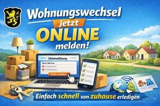 Das Einwohnermeldeamt Auerbach/Vogtl. informiert, dass die Ummeldung bei einem Wohnungswechsel ab sofort auch digital möglich ist.