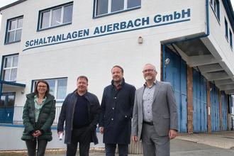 Im Rahmen seiner Besuche in Auerbacher Unternehmen informierte sich Oberbürgermeister Jens Scharff gemeinsam mit Auerbachs Bauamtsleiter und Wirtschaftsförderer Patrick Zschiesche am 22. Februar 2023 über den aktuellen Stand in der "Schaltanlagen Auerbach GmbH".